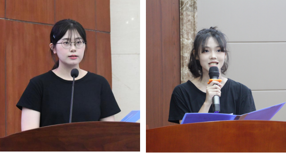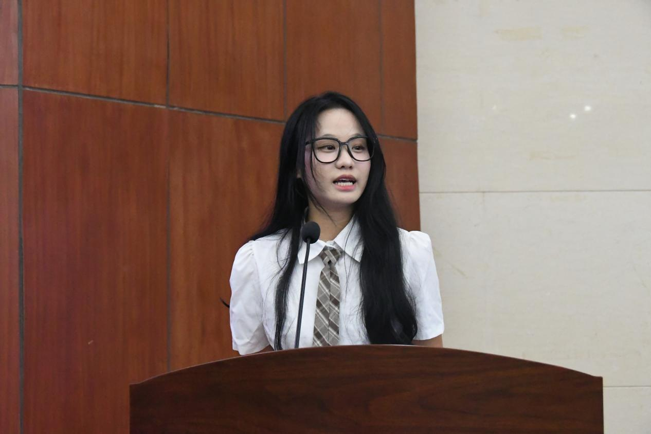 最后,新生代表2024级教育学润之英才班赵若熙和心理1班毛润婧分别发言。她们表达了同学们对老员工活的向往与期待。同时,也倡导同学们砥砺品格,志存高远,知行并重,勇于实践,用青春诠释誓言,用汗水铸造辉煌,努力成为品行兼备的一师新青年。