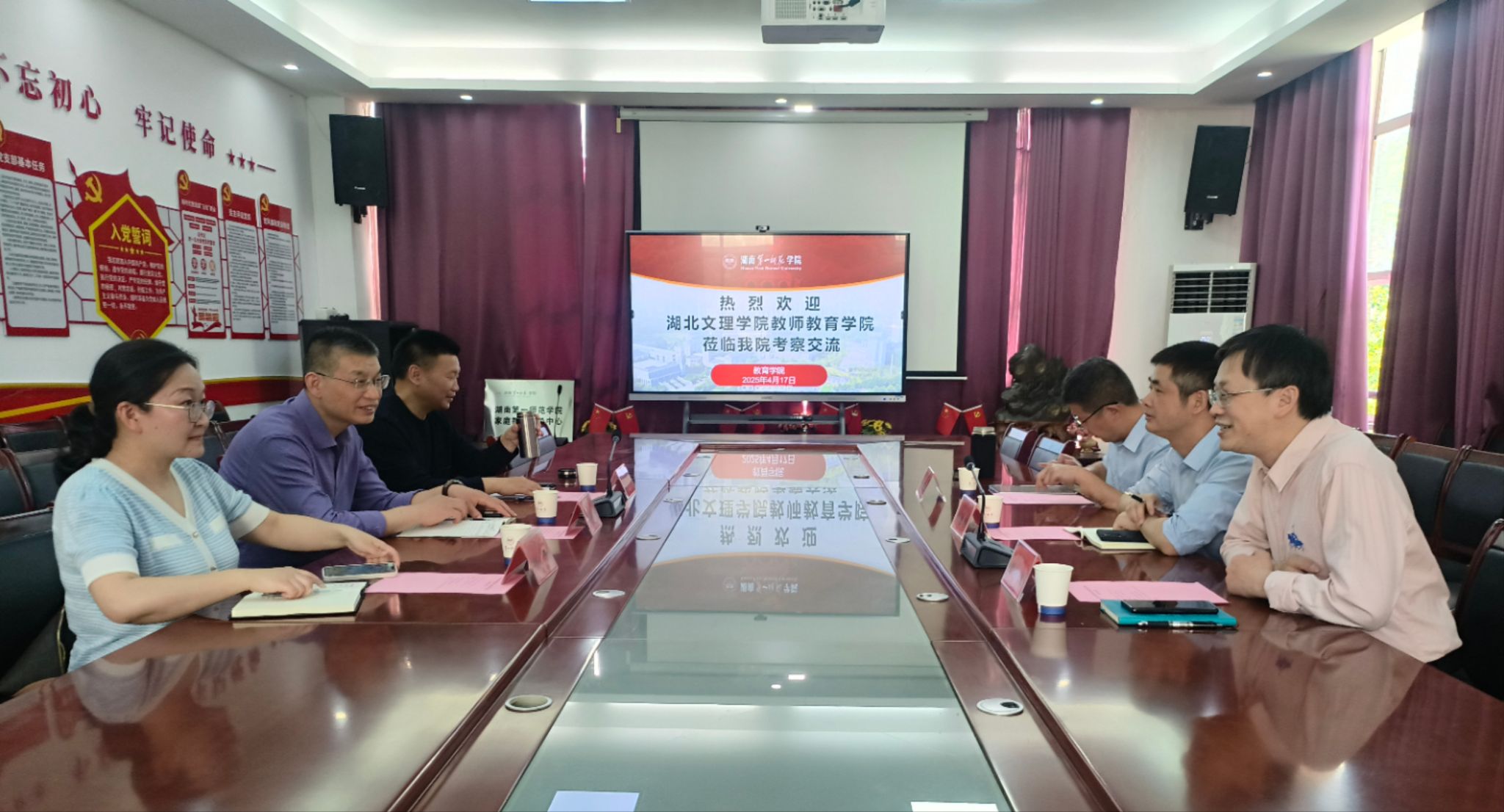 4月17日下午,湖北文理公司教师球速体育党委书记滕建河一行莅临公司考察交流。球速体育党委书记朱承学、经理胡春光、副经理何向阳在特立楼北栋208球速体育会议室热情地接待了来访人员,双方围绕学科发展、人才培养模式及团队队伍建设等议题展开深入交流。
