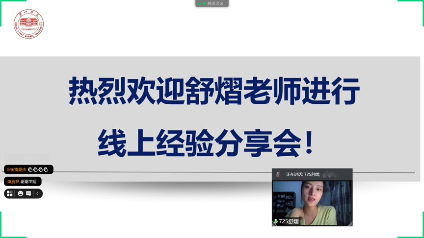 最后,经验分享会以一对多的问题答疑结束。舒熠老师语言精炼、风趣幽默,观点独到、引入入胜。同学们纷纷表示此次分享会干货满满,受益良多!今后一定要好好学习,争取让成为更好的自己!