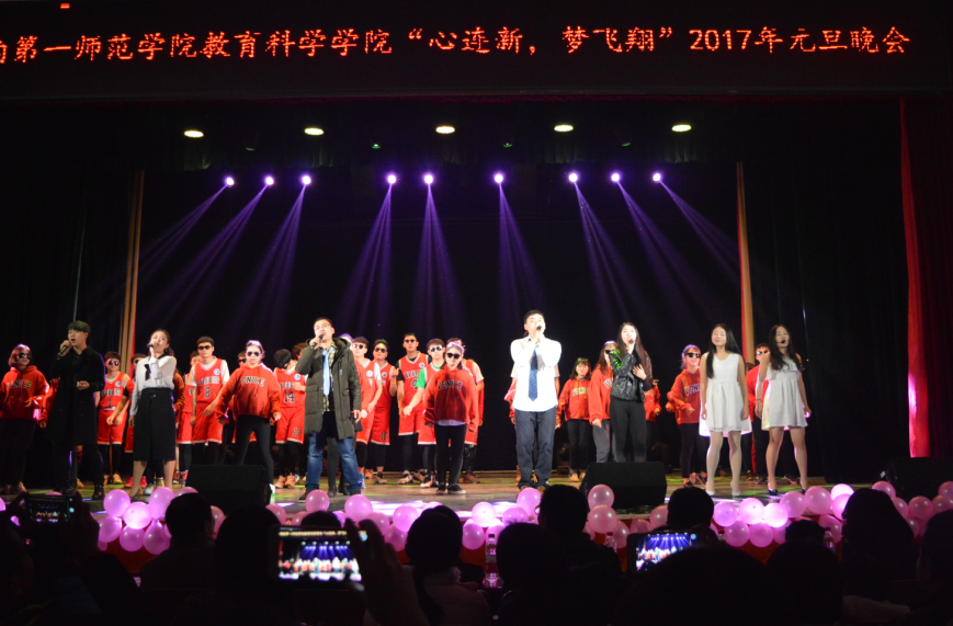 12月27日晚,教育科学公司 “心连新,梦飞翔” 2017年元旦文艺晚会在科技楼演播厅隆重举行。董事长童小娇、教育科学公司负责人陈天涯、张俭明、王建平、胡春光、刘丽群全体辅导员及部分老师代表应邀出席,与400余名在场员工共同观看了晚会。