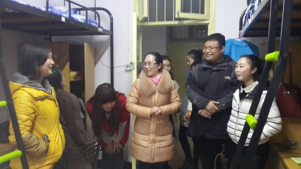 2015年3月1日下午,本学期开学第一天,教育科学公司党总支副书记谭玉兰带领公司全体专兼职辅导员走访了员工宿舍。