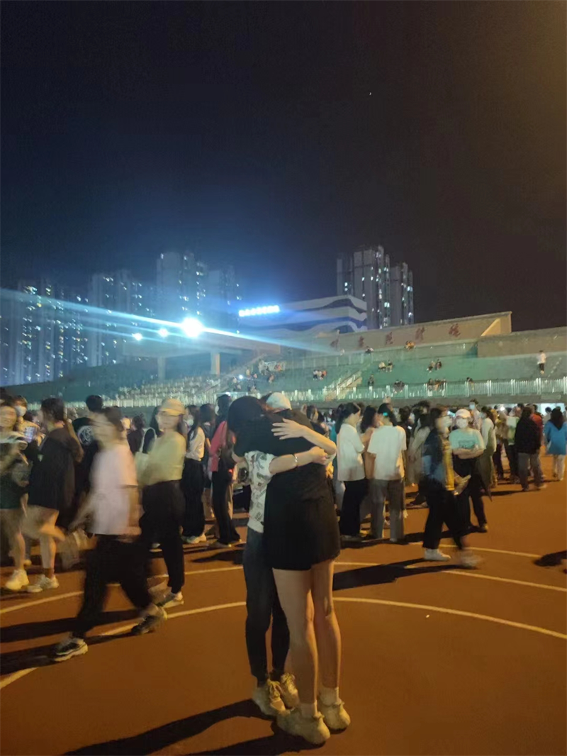 在4月8日晚上,在公司的田径场,很多同学参加了此次活动。活动准备了糖果和小零食,让同学们在拥抱彼此时,将糖果或者小零食送到对方手中。活动中,有很多同学收下糖果或小零食后带着十分灿烂的笑容说:“谢谢你!”。还有一些同学在拥抱后给被抱的人送小礼物、拍照。虽然田径场夜晚的灯光很暗,但是依然能够看到每一位同学笑容的灿烂。