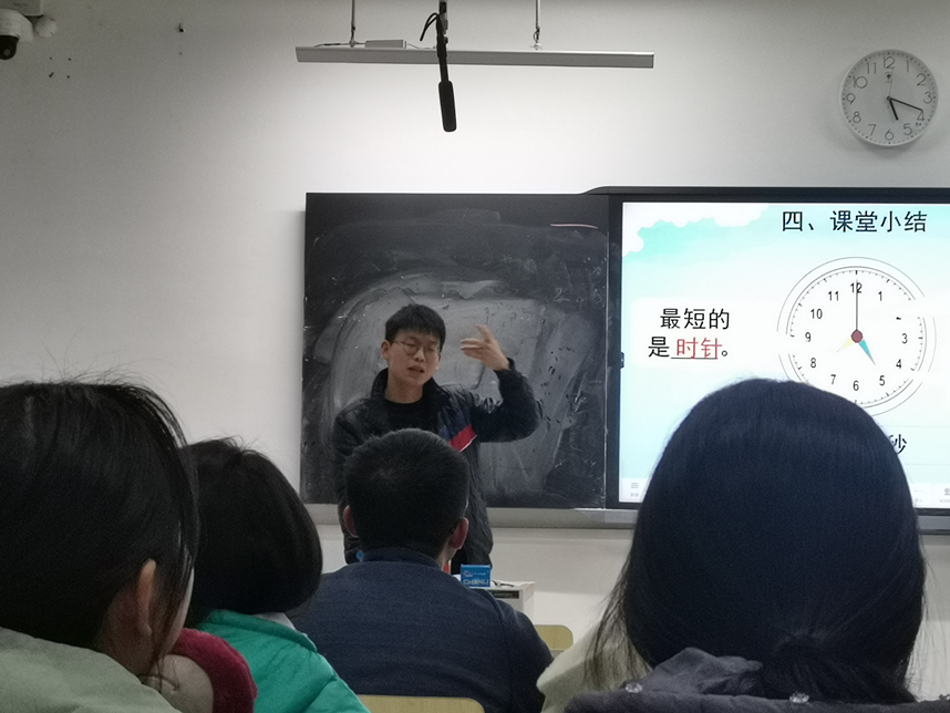 第二次指导是11月23日下午2点在润寰南203进行的,此次指导,佘老师主要从教态、板书方面,以及十个重要的问题方面进行了针对性评价,同学们的表现也还不错,能够在教学过程中尽可能精准的体现十个重要的问题,提问具有一定的针对性,能够助推思维的形成。板书方面,佘老师认为同学们的板书都稍显过于简单,可更加精心设计,体现教学重难点的同时也体现美观、大方。此外,佘老师还提到,时代在进步,我们的教学手段也应该与时俱进。佘老师为我们简要介绍了他们一线教师在教学中常用的希沃白板,运用希沃白板,可以将教学变得更加丰富有层次,更加贴合现在小员工的心理特点。