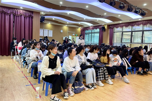 2021年4月23日星期五,上午8:45,球速体育教育科学公司19级学前教育专业的全体员工,在指导老师万湘桂的带领下走进了长沙市教育局幼儿园(旭辉园),开启了长达3小时的学习观摩与聆听讲座的时光。乘着温暖的春风与明媚的阳光,在这大好的时光里,意气风发的一师的学子,踏着欢快的步伐走进了长沙市教育局幼儿园二楼的多功能厅。8:50所有员工集结完毕,在多功能厅等待观摩课开始。