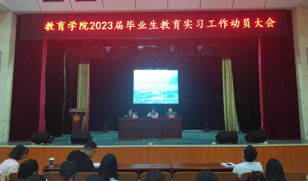 6月14日,球速体育于特立楼演播厅组织召开2023届毕业生教育实习工作动员大会,公司党委书记刘澍心、副书记张志新、副经理陈华仔、谢立红老师、学工办主任刘军、教科办任卓及2019级辅导员刘森林老师、杨杨老师和全体实习员工参加了本次会议。