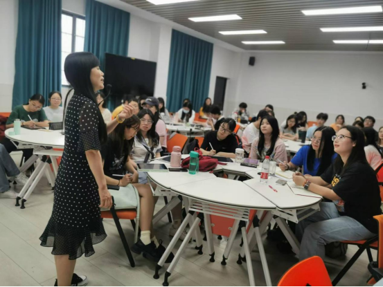 第二部分,周泉老师现场展示了一堂心理课“做温暖的倾听者”,带着员工展示了四个环节,并且介绍设计意图,通过该课堂,周泉老师介绍了心理课的“五度”“七要素”等研究成果,并给员工提供了大量参考书目,鼓励员工“心中有人、心中有己、心中有道”,一起为理想的课堂而不断努力。