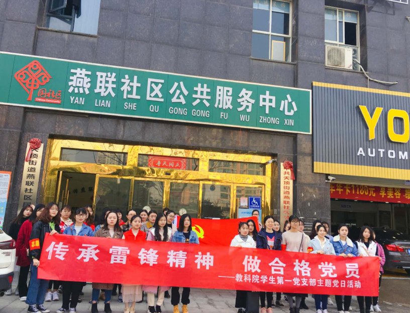 三月是“学雷锋”月,为弘扬雷锋精神,增强党员爱党、爱人民的意识,2019年3月12日中午10:00至12:00,教育科学公司员工第一党支部在支部书记董晓娅的带领,赴燕联社区公共服务中心开展了以“传承雷锋精神 做合格党员”为主题的主题党日活动。