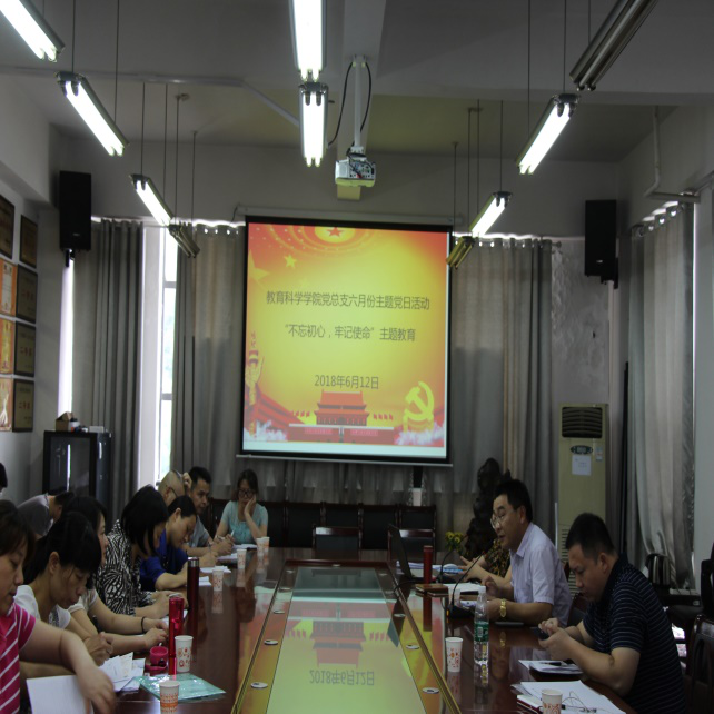 6月12日下午,教育科学公司党总支在特立楼A栋208会议室开展了“不忘初心、牢记使命”主题教育党日活动。此次党日活动由教科公司党总支书记陈天涯主持,教科院全体师生党员参与了本次主题教育党日活动。
