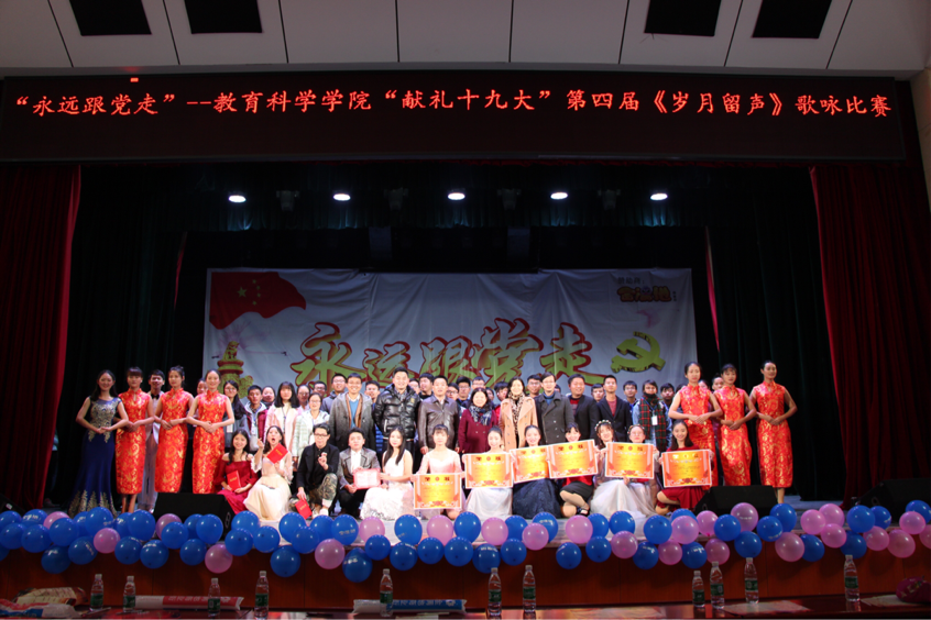 为进一步宣传贯彻落实党的十九大精神,培育和践行社会主义核心价值观,由教育科学公司党总支部主办、员工会文娱部艺术团承办的“永远跟党走,献礼十九大”第四届“岁月留声”演唱比赛于11月21日晚七点在科技楼演播厅举行。公司蒋蓉经理、党总支陈天涯书记 、张俭明副书记 、王建平副经理 、刘丽群副经理、胡春光副经理等 400余名师生参加。