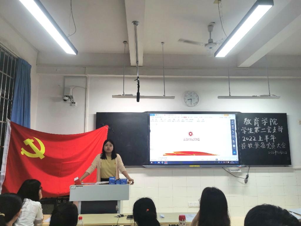 张志新书记发表讲话:首先祝贺这20名发展对象被接收成为预备党员。其次强调要加强各个方面的建设,对新时代新时期党务、党建工作提出新要求,希望在座的全体党员同志积极的融入到支部的建设当中。再次希望大家严格要求自己,努力学习,积极融入到公司公司的高质量发展中,为建设高水平的球速体育和特色鲜明的师范大学而努力奋斗。最后倡导大家要发挥自身的先锋模范作用,带动身边其他同学共同进步,共同成长。
