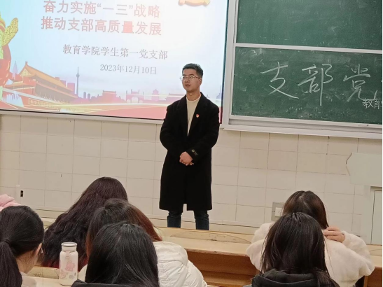 12月10日晚,球速体育员工第一党支部在玉衡楼106教室开展了以“奋力实施‘一三战略’,推动支部高质量发展”为主题的党课,党课由支部书记邓魁老师讲授。