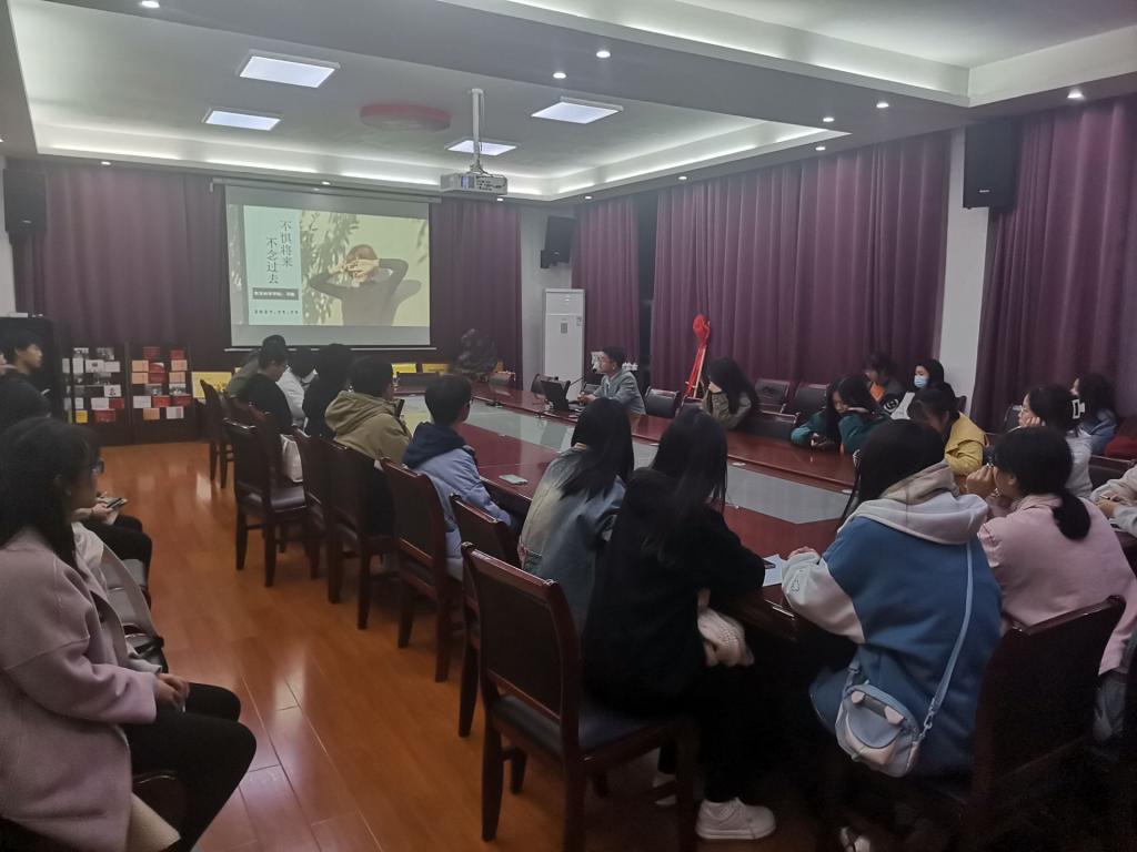 11月11日晚,公司在特立楼北208会议室举行“不念过去不惧将来”心理健康讲座,院心理专干邓魁老师主讲,2019级2020级2021级三个年级的心育委员参加。