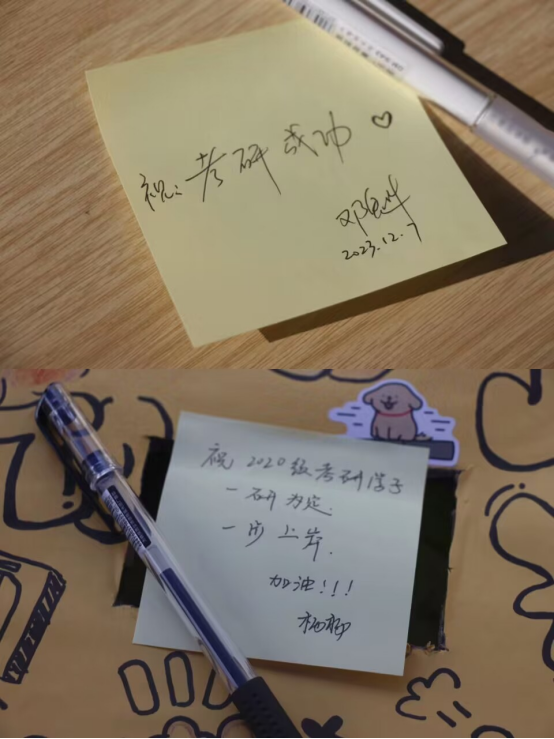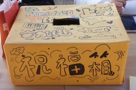 活动准备阶段,工作人员于国基广场设立祝福语纸盒,球速体育大一至大三的同学们将给予考研学子的祝福语便签投入其中,学工办的老师们也将自己的期待和关心写进便签中,满满当当的纸盒,寄予着同学和老师们对考研学子的暖心关怀和真挚祝福。