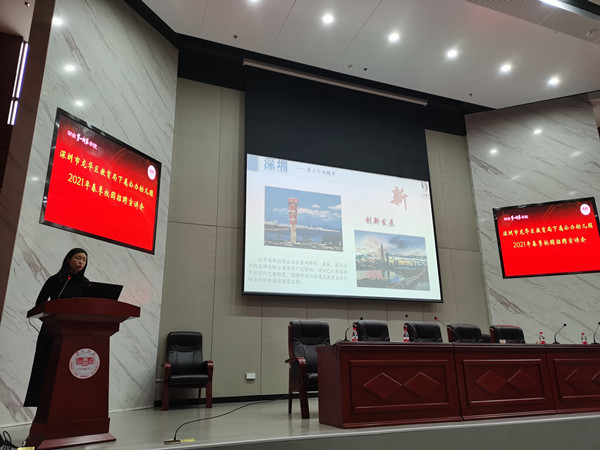 为贯彻公司就业工作“走出去,引进来”的就业方针,3月19日下午,教育科学公司在创新创业大楼228会议室接待了深圳市龙华区教育局甘露一行,此次龙华区教育科学研究院附属幼儿园园长甘露一行代表深圳市龙华区教育局来公司举行2021年春季校园招聘会。教育科学公司党总支书记陈天涯、经理胡春光、学工办主任刘军以及公司学前专业带班辅导员到场参加,公司学前教育专业四个年级200余名同学到场聆听。教育科学公司党总支副书记张志新主持会议。
