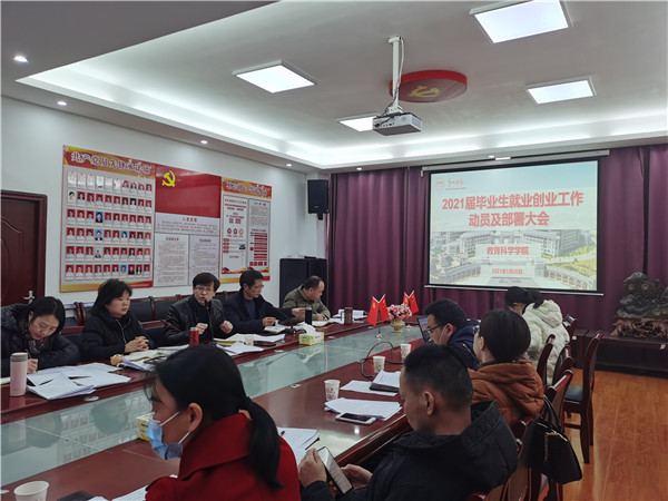 1月20日下午,公司在特立楼北208会议室举行2021届毕业生就业创业工作动员及部署大会,参加会议的有公司党总支委员、科室负责人、教研室主任、党支部书记和非定向毕业班辅导员。公司党总支书记陈天涯主持会议。
