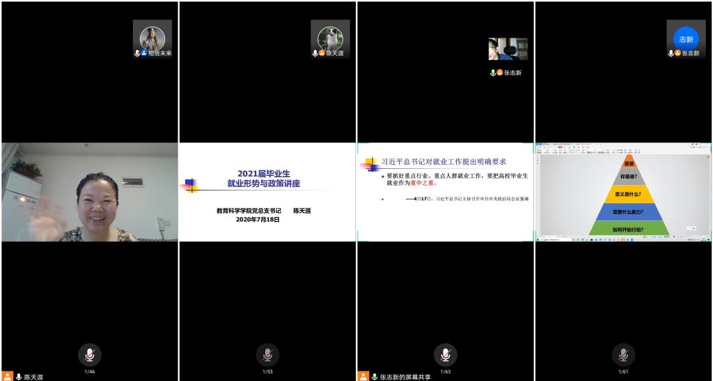 就业是民生之本,党和政府高度重视就业工作。习近平总书记多次强调就业工作的重要性,尤其是高校毕业生的就业工作,总书记在今年的中央政治局会议指出,“要抓好重点行业、重点人群就业工作,要把高校毕业生就业作为重中之重”。对此,教育科学公司党政领导高度重视就业工作,提前规划部署,开展就业指导工作,以就业指导课为契机,公司党总支书记陈天涯、党总支副书记张志新、学工办主任刘军等公司领导老师于7月19日至20日为2021届的毕业生们开展就业指导课程讲座。