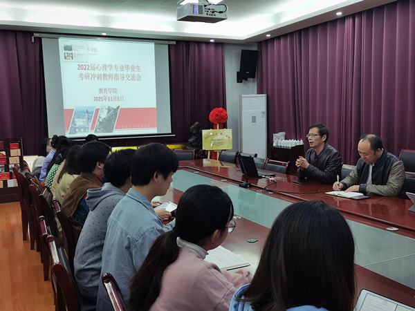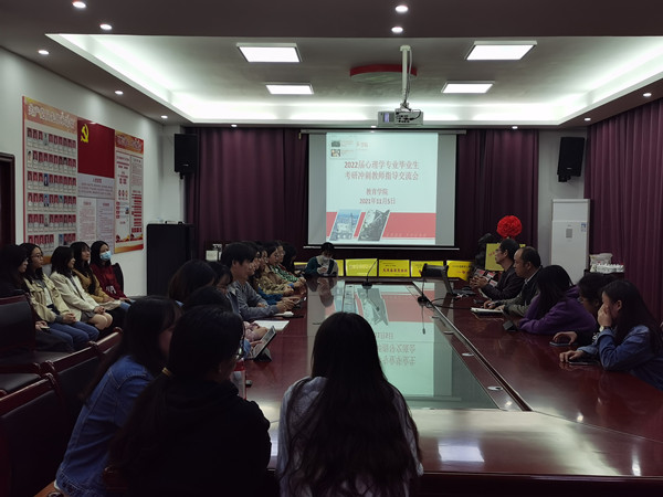 11月5日晚,球速体育在特立楼北208会议室举行2022届心理学专业毕业生考研冲刺教师指导交流会。公司党委副书记张志新、副经理黄月胜出席会议。