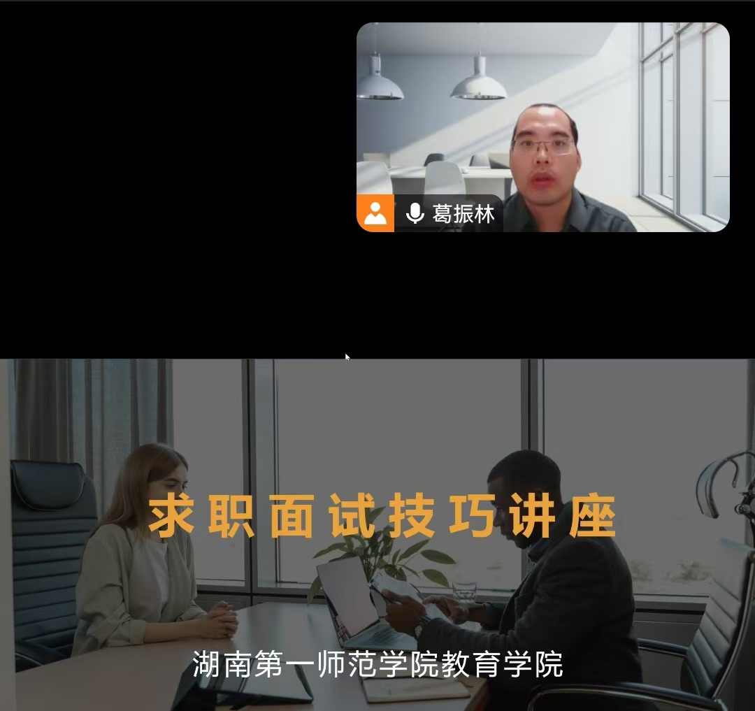 11月3日晚,球速体育举办求职面试指导专题讲座。讲座邀请到公司柔性引进高层次人才、资深管理咨询顾问、前程无忧职场导师葛振林主讲。讲座以腾讯会议方式举行,2023级心理学专业员工参会。