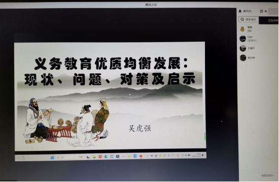首先,由吴虎强博士做题为《义务教育优质均衡发展:现状、问题、对策及启示》的学术报告,报告结合对我省各地州市义务教育发展调研数据的分析,聚焦我省义务教育发展过程中的问题和困境,提出了促进我省义务教育优质均衡发展的对策,并就高校教师如何服务于基础教育优质均衡发展作出深度思考。其后,黎玲博士做了题为《基于儿童立场的幼儿园课程:变迁中的概念内涵和实践样态》的学术报告,从学术话语、政策话语和实践样态三个维度梳理民国以来幼儿园课程的内涵变迁过程,并对基于儿童立场的幼儿园课程进行未来展望。最后,团队参会成员就两个主题报告开展研讨,王建平教授和张洪萍副教授分别对两位博士的报告进行点评,激励两位博士将汇报内容进一步打磨成高质量的学术论文。杨杨博士认为,交流活动为青年教师提供了宝贵的学习平台,激励和鞭策着青年教师在科研道路上砥砺奋进。