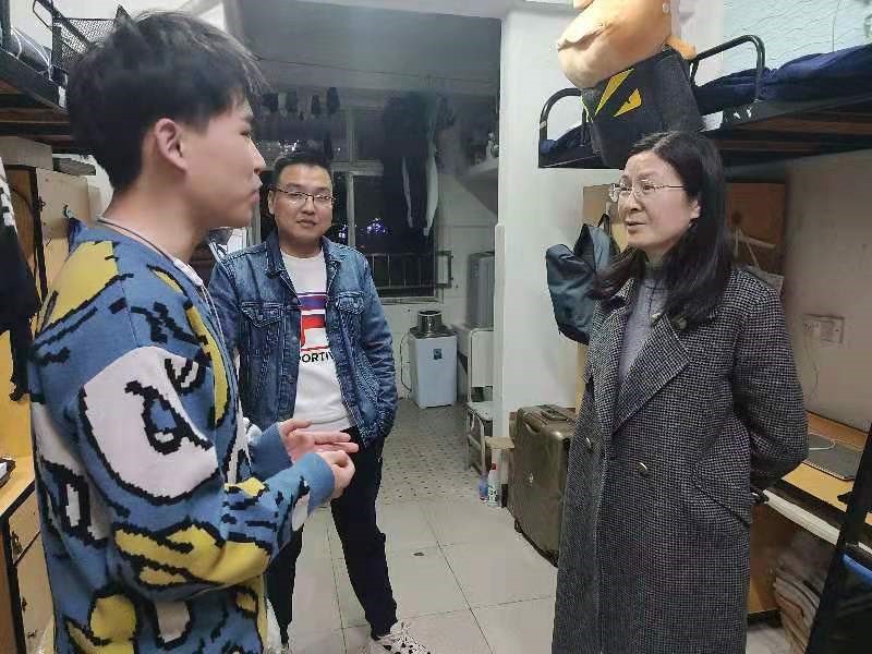 蒋蓉副董事长看到大部分寝室的同学们都在认真备考教资,对认真学习的同学进行表扬,祝愿努力备考的同学们取得好成绩。