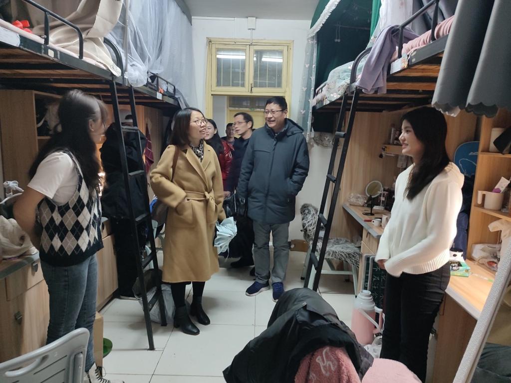 纷飞的大雪挡不住关怀的脚步,冷却不了温暖的热情。2月22日傍晚,公司党委书记刘澍心、经理刘丽群、副书记张志新、副经理黄月胜、学工办主任刘军带领全体辅导员前往员工公寓看望同学们。