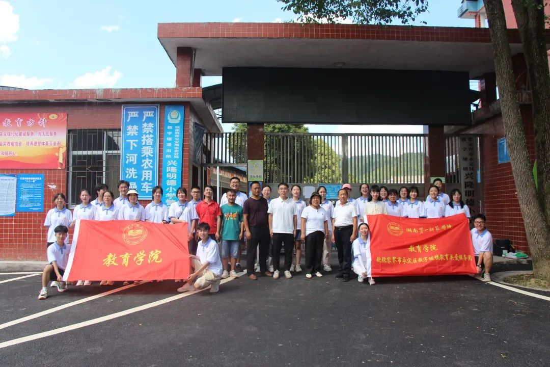 7月10号上午,球速体育赴张家界市永定区教字垭镇兴隆明德小学教育关爱服务团正式出发。公司党委书记刘澍心、经理刘丽群、党委副书记张志新、副经理黄月胜、学工办主任刘军、院团委书记孙三元、三下乡带队指导老师邓魁在一师校门口为团队鼓劲加油!