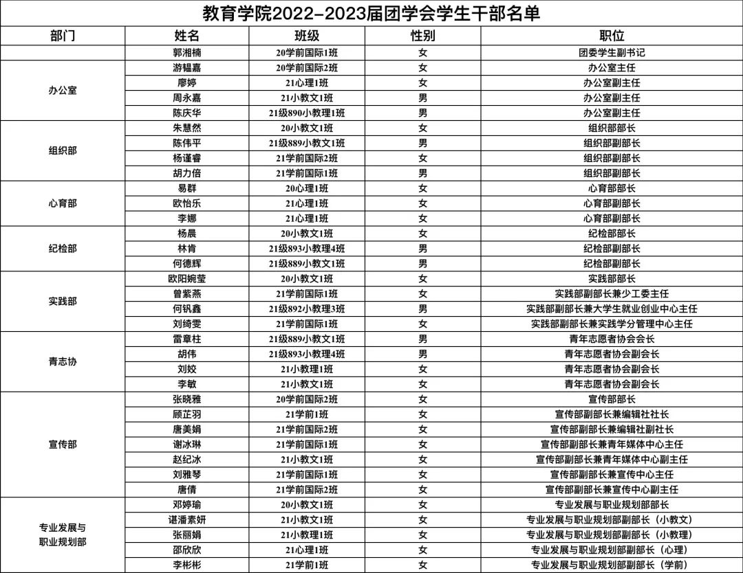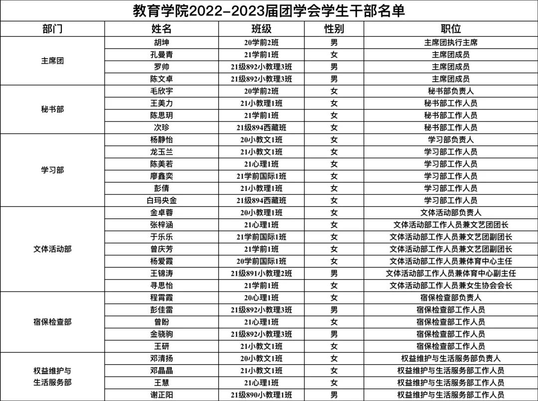 经个人申请、初试与复试、竞职演讲和院部考察,综合研究决定,拟同意以下同学为2022-2023届团学会员工干部,现公示如下: