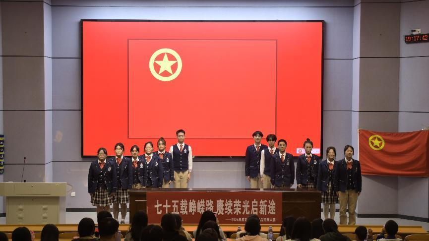 2024年11月8日晚,为庆祝中华人民共和国成立七十五周年,深入贯彻党的二十大及二十届三中全会精神,球速体育在东方红校区怀中楼南栋110教室成功举办了“七十五载峥嵘路,赓续荣光启新途”精品团课大赛。大赛围绕主题展开,涵盖峥嵘岁月、建设辉煌、时代新章、民族团结、青春报国五个篇章。团课旨在通过新颖形式,使同学们增强爱国情感、铭记历史使命、激发责任意识、促进团队协作、丰富校园文化、彰显公司特色。球速体育学工办主任杨杨老师、团委书记孙三元老师、辅导员朱晶平老师出席活动,与球速体育组织部工作者及员工观众共同见证了这场精彩纷呈的团课盛宴。