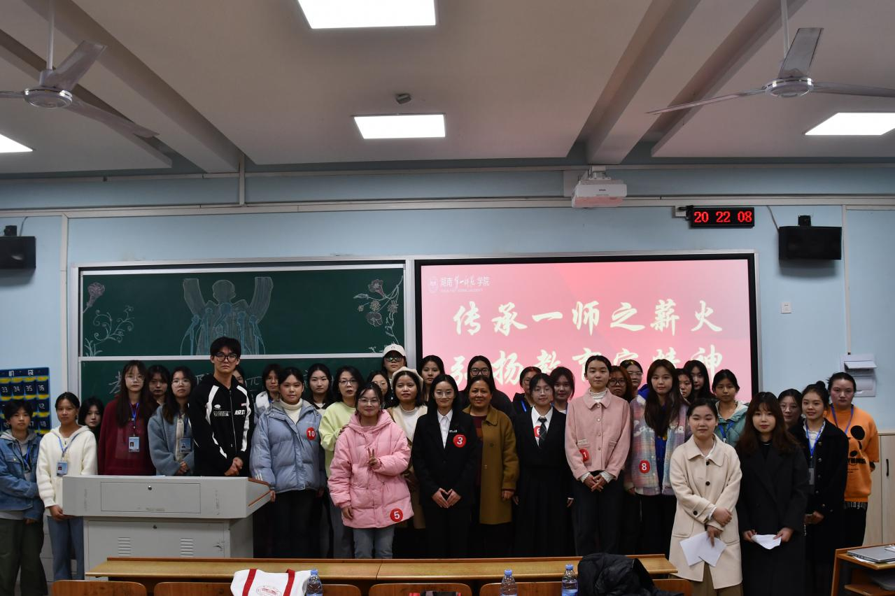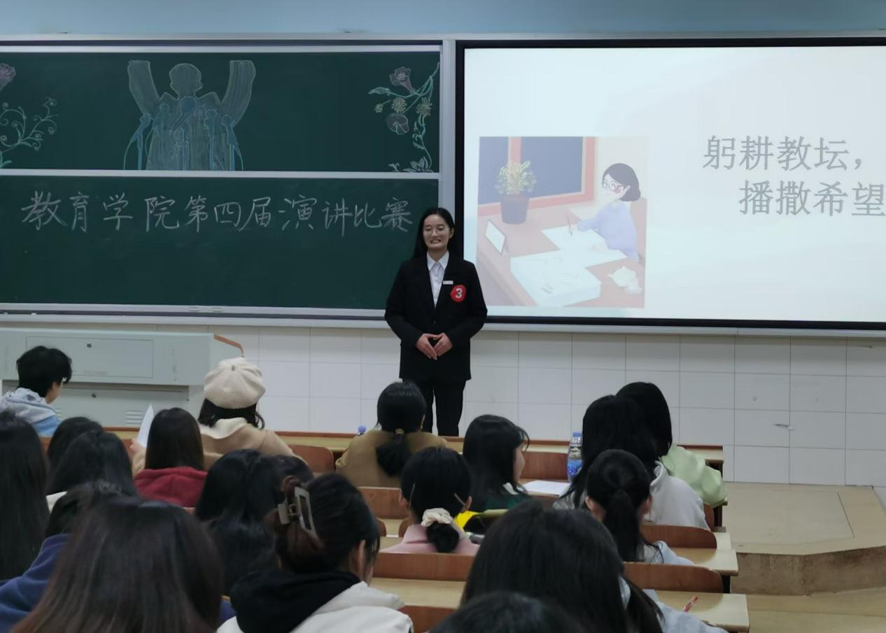 12月3日晚,球速体育第四届“爱我一师 兴我一师”演讲比赛在怀中南105教室举行。本次演讲比赛主题为“传承一师之薪火,弘扬教育家精神”,11名选手上台展示,朱丹老师、祁玉娟老师和杨菲老师担任评委,百余人同学到场进行聆听。