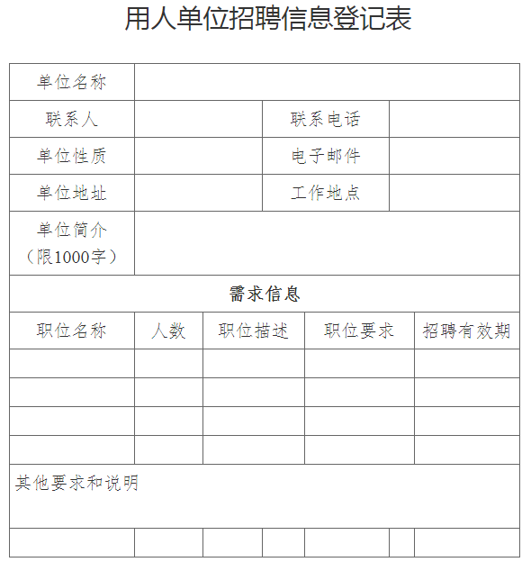 (三)各地商务主管部门要及时将本通知精神传达至辖区内相关电子商务企业。企业用人单位可根据岗位空缺和需求情况,自主登录新职业网活动专栏,注册企业会员免费发布招聘信息,或按统一数据格式(电子表格在新职业网该招聘活动专栏下载)和要求,将招聘信息以电子邮件方式报送教育部就业指导中心,报送格式及要求详见附件。