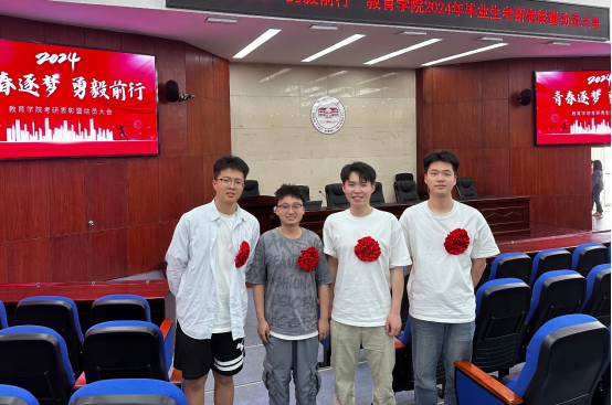 这四个男生分别是胡坤、吕伟杰、吴奇、郭宇航,他们四人组成考研“搭子”,也被称为“学前四子”。现分别被华南师范大学、湖南师范大学、湖南科技大学、成都大学四所高校拟录取。